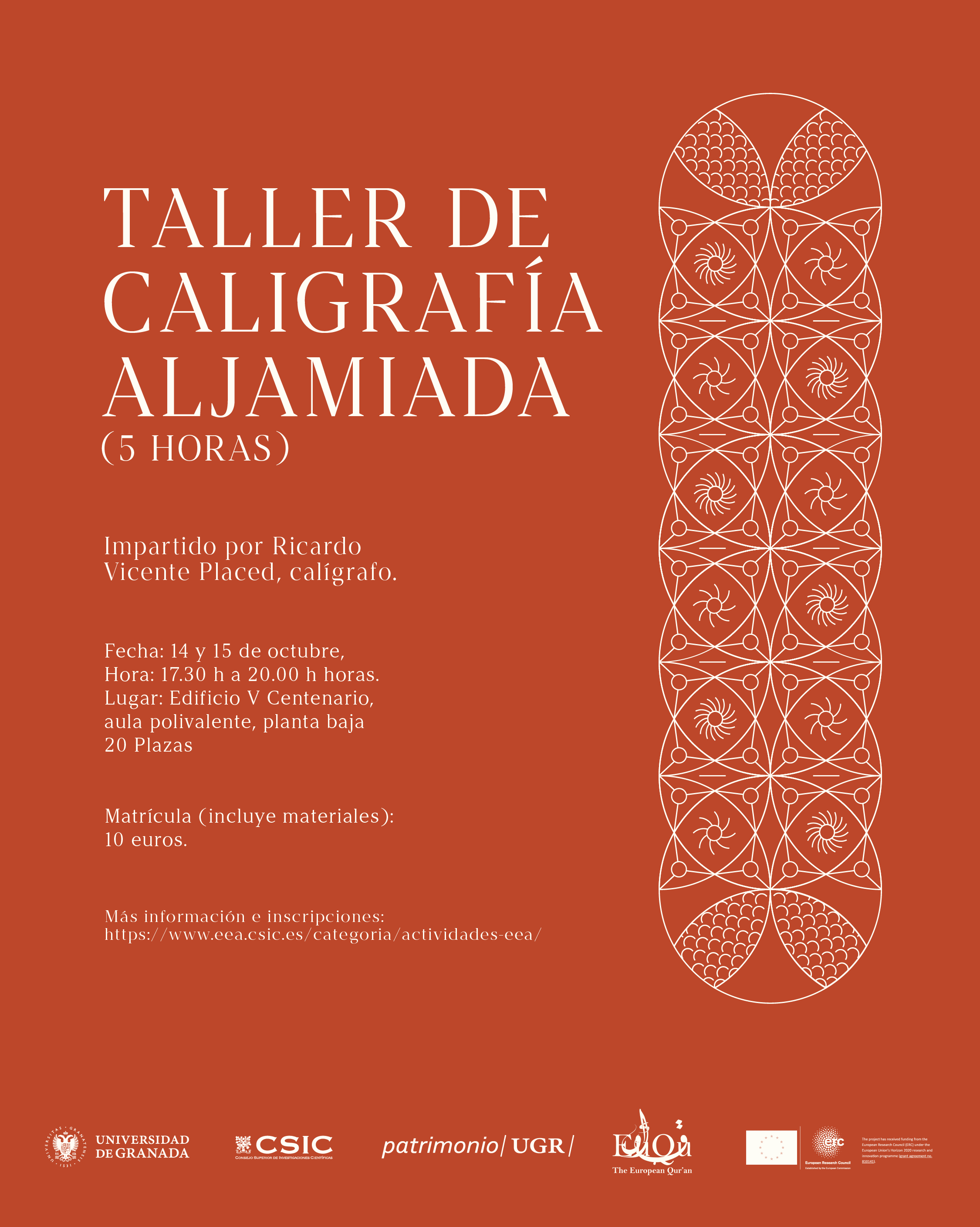 Matrícula (incluye materiales): 10 €, a ingresar a la Escuela de Estudios Árabes